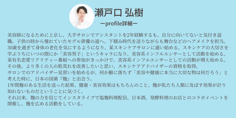 ー奇跡の37歳 美容家 麹princeー麹の発酵でお肌を発光させる⁈瀬戸口弘樹の麹Beautyレシピ!!